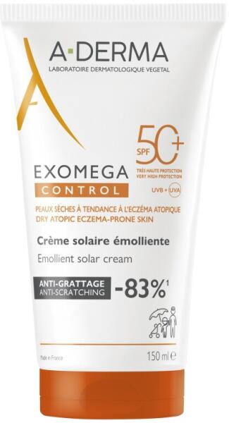 A-DERMA Bőrpuhító, védő krém SPF 50+ Exomega Control (Emollient Solar Cream) 150 ml