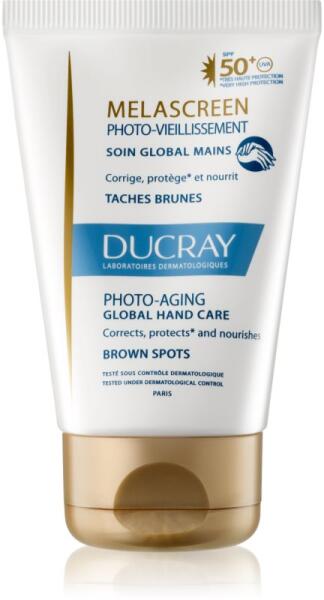 Ducray Melascreen, 50 ml, Napozás előtti készítmények unisex, A kiváló minőségű Ducray Melascreen kézkrém hidratálja a kézbőrt és biztosítja számára a szükséges táplálást. Tulajdonságok: hidratálja és táplálja a bőrt finommá és selymessé teszi a bőrt bőröregedés elleni megelőző védelmet nyújt UVA és UVB sugárzástól is védi a bőrt meggátolja az arcbőr egyenetlen pigmentációját Használata: A kézkrémet szükség szerint vigye fel a kezére és masszírozza, amíg teljesen fel nem szívódik.