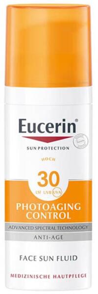 Annak, hogy a napsugárzás káros hatással van a bőrre, az UV-fény a legfőbb oka, de a  nagy energiájú látható fény (HEVIS)  szintén létrehoz szabadgyököket, melyek további stresszt jelentenek a bőr számára. Az Eucerin Sun Photoaging Control napozókrém arcra SPF30 olyan, mindennap használható napvédő, mely minden bőrtípusra alkalmazható. A  Szélesspektrumú Fényvédelmi Technológia a magas szintű UV-védelem érdekében  egyesíti a szélessávú és fotostabil UVA/UVB-szűrőket 1 és a  Licochalcone A  hatóanyagot, mely semlegesíti az UV-fény és a HEVIS fény következtében létrejött szabadgyököket. Az öregedésgátló napvédő  glicirretinsavat  is tartalmaz, amely támogatja a bőr saját DNS-javító mechanizmusát. A rövid és hosszú láncú hialuronsavval gazdagított formula láthatóan csökkenti a ráncokat az arcon és a dekoltázson.