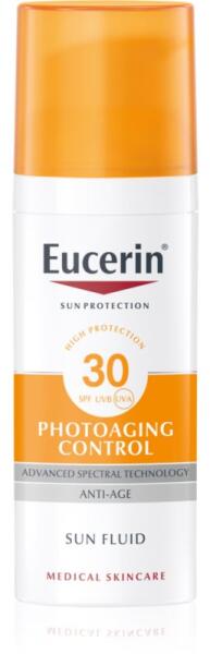 Eucerin Sun Photoaging Control, 50 ml, Napozás előtti készítmények nőknek, Védje bőrét a napégéstől, az idő előtti öregedéstől és a napfény okozta egyéb károsodásoktól. A rendkívüli Eucerin Sun Photoaging Control fényvédő hatékony védőpajzsot képez az UV-sugarakkal szemben, segít megelőzni nemcsak a leégést vagy a pigmentfoltokat, hanem a bőr rugalmasságának csökkenését, a kollagénvesztést és az öregedés egyéb jeleit is. Végül, de nem utolsósorban jelentősen csökkenti a bőrrák kockázatát. Tulajdonságok: védi a bőrt az UV-sugárzás okozta károsodástól védi az arcbőrt a korai öregedéstől intenzíven hidratál gyorsan felszívódik táplálja az arcbőrt Összetétel: parfümmentes Használata: Még a napon tartózkodás előtt vigye fel a tiszta arcbőrre. A felvitelt szükség szerint, főleg fürdés, törülközés vagy erős izzadás után, ismételje meg.