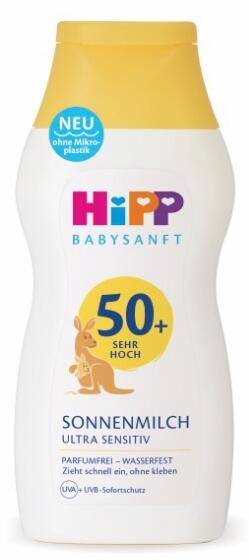 HiPP Babysanft naptej érzékeny bőrre babáknak és gyermekeknek 50+ védőfaktorral, UVA+UVB szűrővel. Nem tartalmaz nanorészecskéket, oktokrilént, illatanyagot, mikróműanyagot.