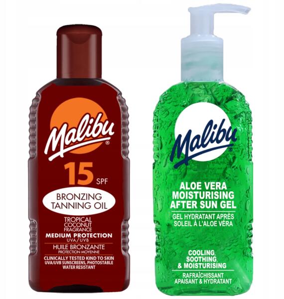 Malibu Napozóolaj SPF15 200ml Aloe Napozás utáni gél 200mlALLEGRO