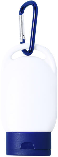 Naptej műanyag tubusban, színben hozzáillő kupakkal és karabinerrel, SPF30 fényvédelemmel ellátva. 30 ml.